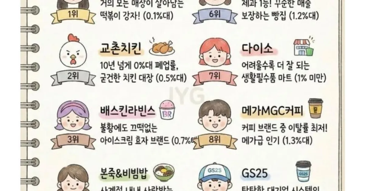 폐업률 낮은 프랜차이즈 TOP 10 ,,